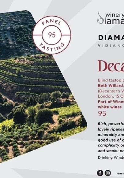 Decanter’s Μagazine Wines of the Year Tasting, 2020:  Diamantopetra White 2019, 95 points!  Blind Tasted by Roman Sayburn...